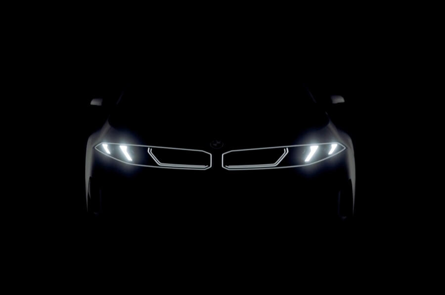 A new preview image confirms that the saloon will feature a wraparound, illuminated 'kidney' motif on its front end that mimics the trademark BMW grille, with the distinctive new diagonal light signature that will be a calling card of the Neue Klasse line-up.