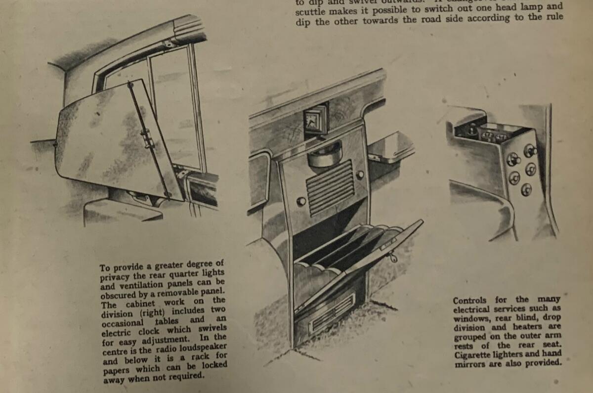 "The rear compartment provides drawing room comfort for two people and has two comfortable occasional seats which fold away into the division when not required," we continued. Ease of entry was aided by coach doors opening 3ft 2in wide and a very shallow roof panel.