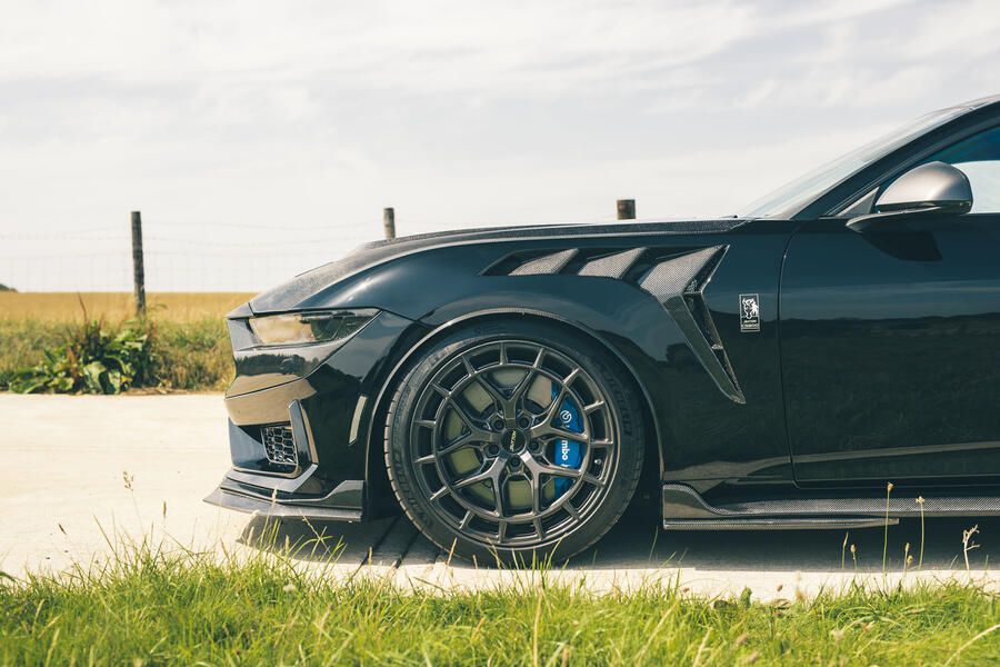 Clive Sutton also adds a Borla exhaust system, a short shifter for the manual gearbox, a set of lowering springs and wider wheels and tyres. There are a bunch of cosmetic changes as well, including carbonfibre splitters, a big wing and Mustang GTD-inspired front wings.