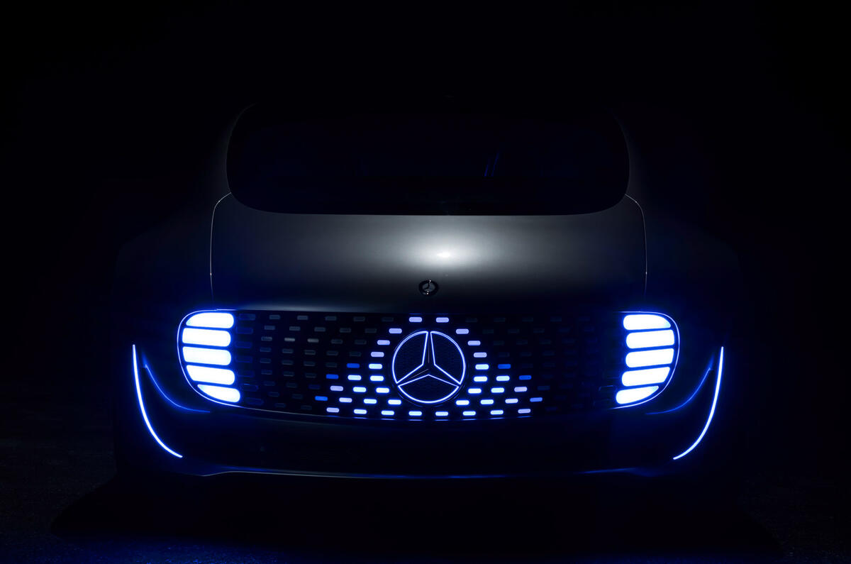 Without any traditional eye contact between the driver and pedestrians in autonomous mode, Mercedes has programmed a series of LEDs within the grille of the F015 to shine when it detects a pedestrian.
