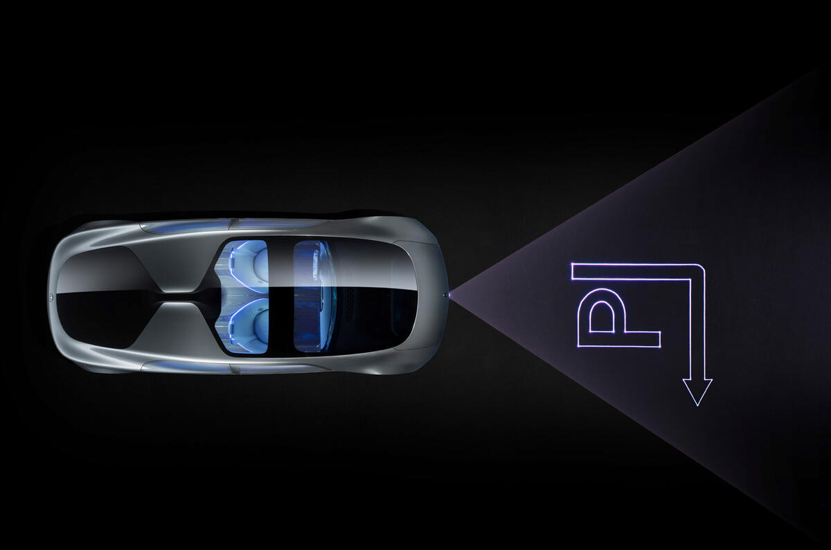 Should the pedestrian wish to cross the road, the concept brakes to a halt and scans its surroundings to check whether it is safe to do so. A laser system is then used to project a virtual zebra crossing on to the road surface while prompting the pedestrian with an audible “please go ahead” message from external speakers.