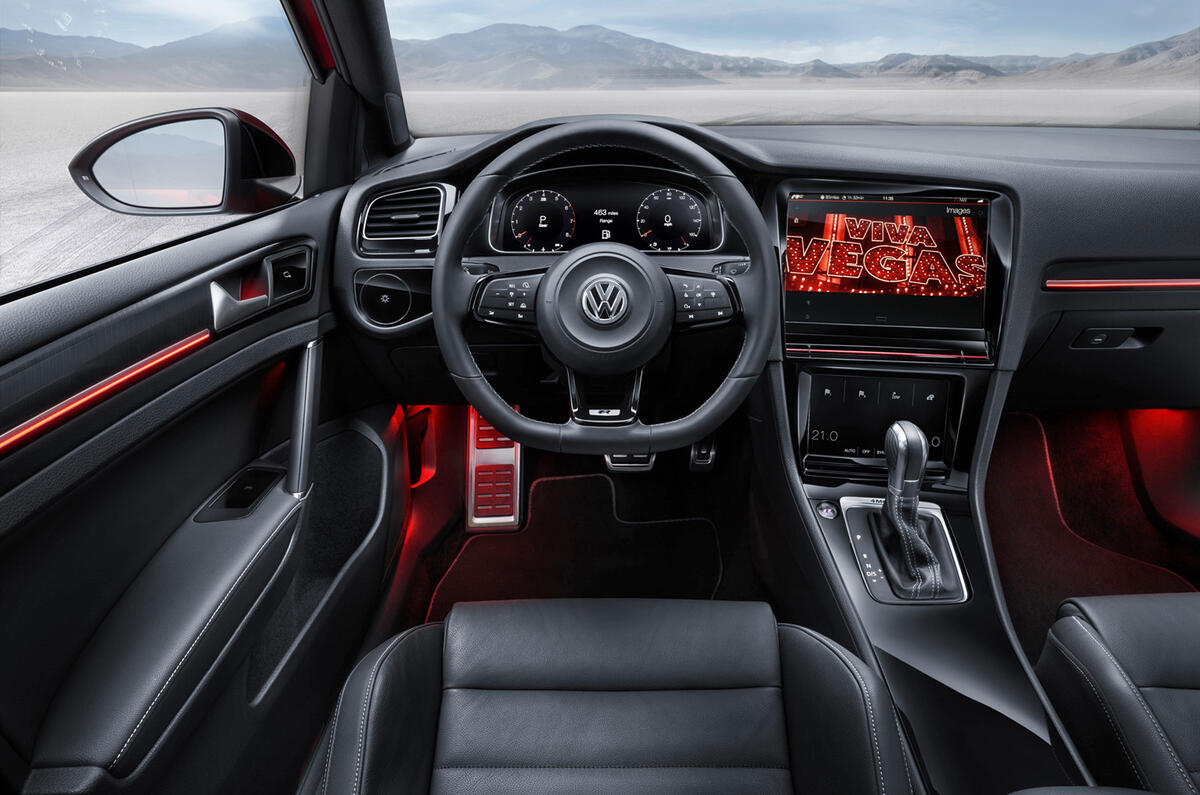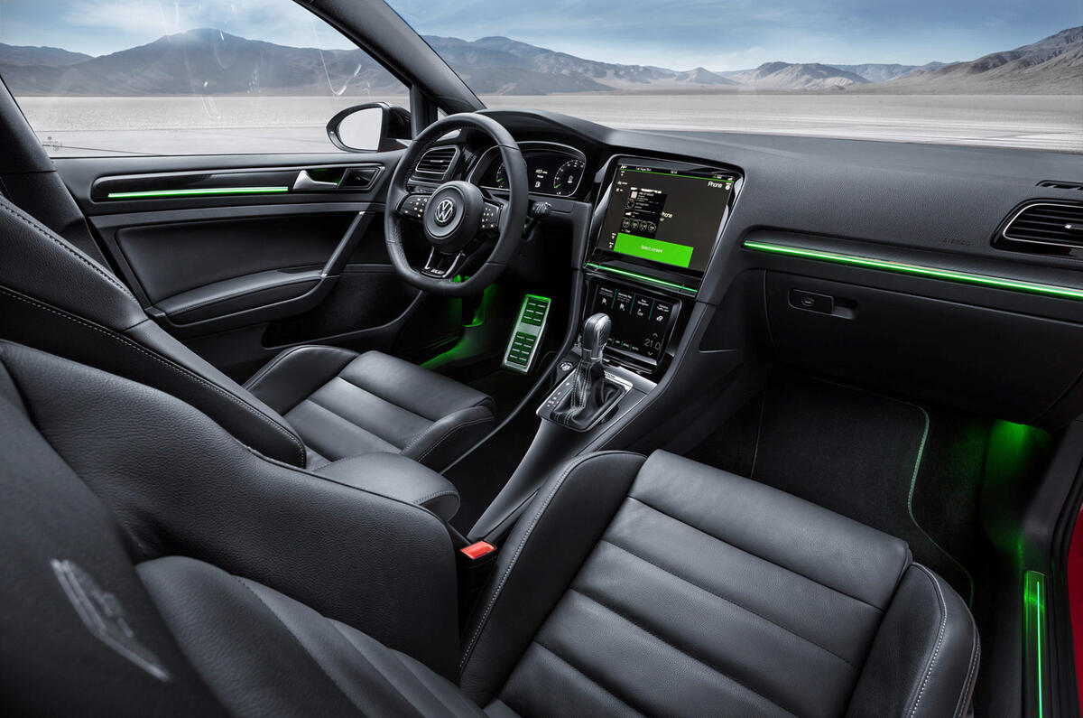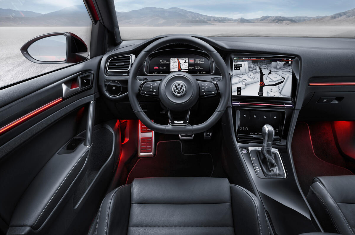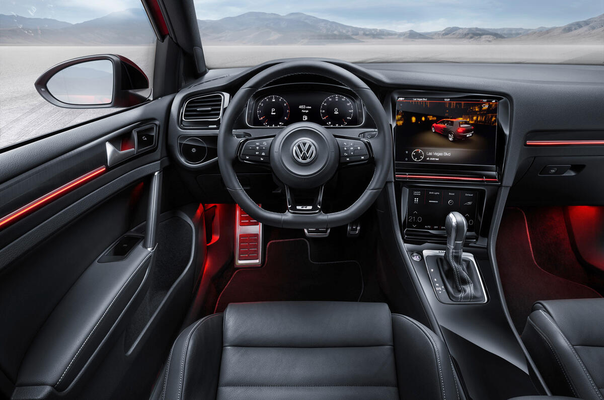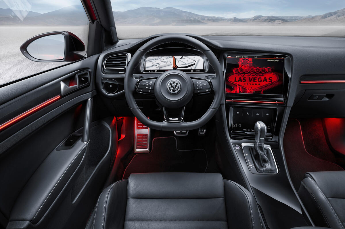 As part of Volkswagen's efforts to provide greater personalisation possibilities in future models, its designers have provided the Golf R Touch with an extensive choice of displays and colour schemes, including a welcome display when it is opened and started and a shut down display when the car is switched off. The ambient lighting is claimed to provide the scope for no less than 16.7 million different colour combinations.