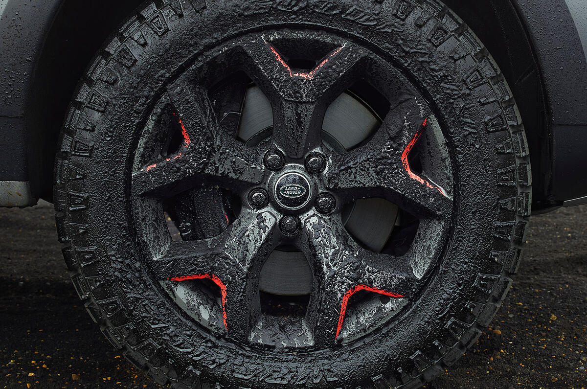 Chunky all-terrain 275/55 R20 Goodyear Wrangler tyres are fitted to lightweight forged aluminium alloy wheels. Land Rover claims the tyres’ extra side-wall height and “more aggressive” tread pattern improve grip on mud and performance on soft surfaces.