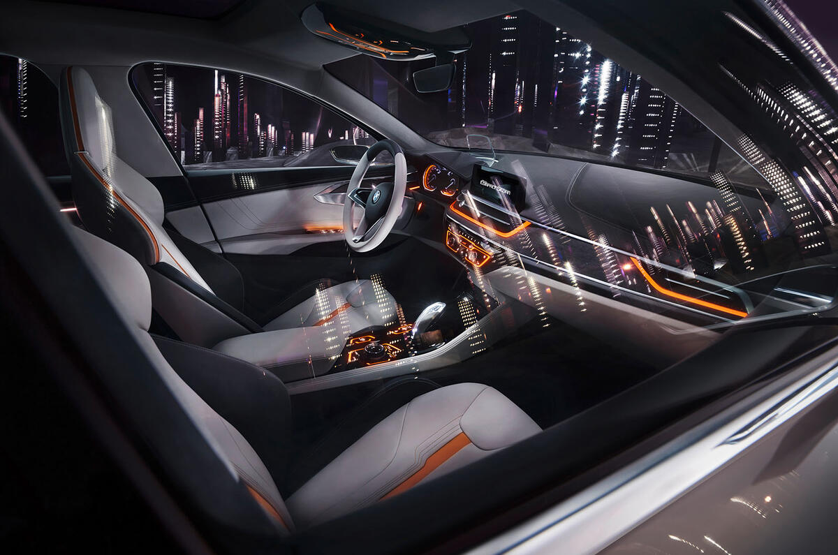 The interior of the concept features an 8.8in free-standing infotainment display as well as wood and brushed aluminium trim. BMW hasn't specified how much space is inside the concept, merely saying that passengers on the rear bench can enjoy an "unaccustomed level of space and openness for a car in this class".
