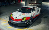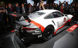 Unlike the rear-engined road 911, the RSR’s 503bhp 4.0-litre six-cylinder engine is located in front of its back axle to enable the fitment of a large rear diffuser. The use of this new part should help the car to produce significantly more downforce than the current one, which uses a much smaller item.