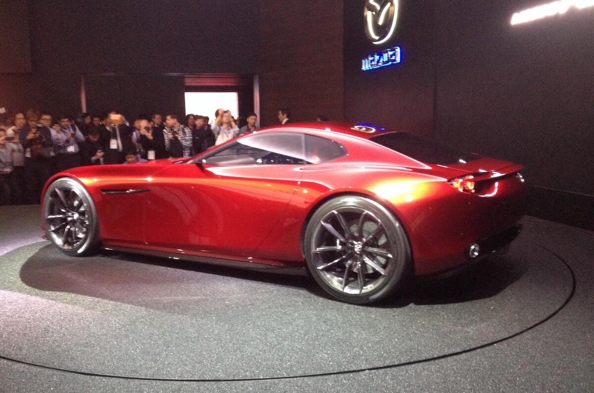 The Japanese like doing things to the letter, so as the second hand attained the vertical at 8.30am precisely, Mazda's president stepped out to reveal the magnificent new RX-Vision two-seat coupé, complete with its new-generation Skyactiv-R rotary engine. The crowd of onlookers was vast; those who were cameramen with video to shoot were actually jostling one another to get to elevated positions.