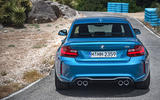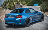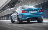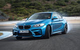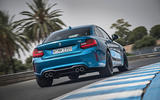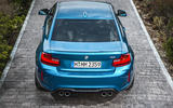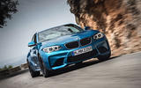 The manual M2 is 45kg heavier than the equivalent M235i, while the DCT-equippedmodel is 25kg heavier than the Sport Auto M235i. Both cars are more powerful than their M235i counterparts by 50bhp, and are a great deal stiffer. With a claimed kerb weight of 1495kg, the new BMW has a power-to-weight ratio of 244bhp per tonne, which is marginally better than the 242bhp per tonne of the Mercedes A45 4Matic.