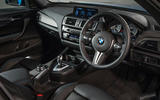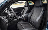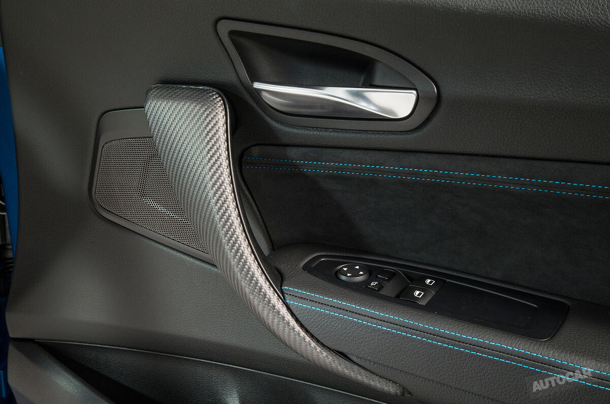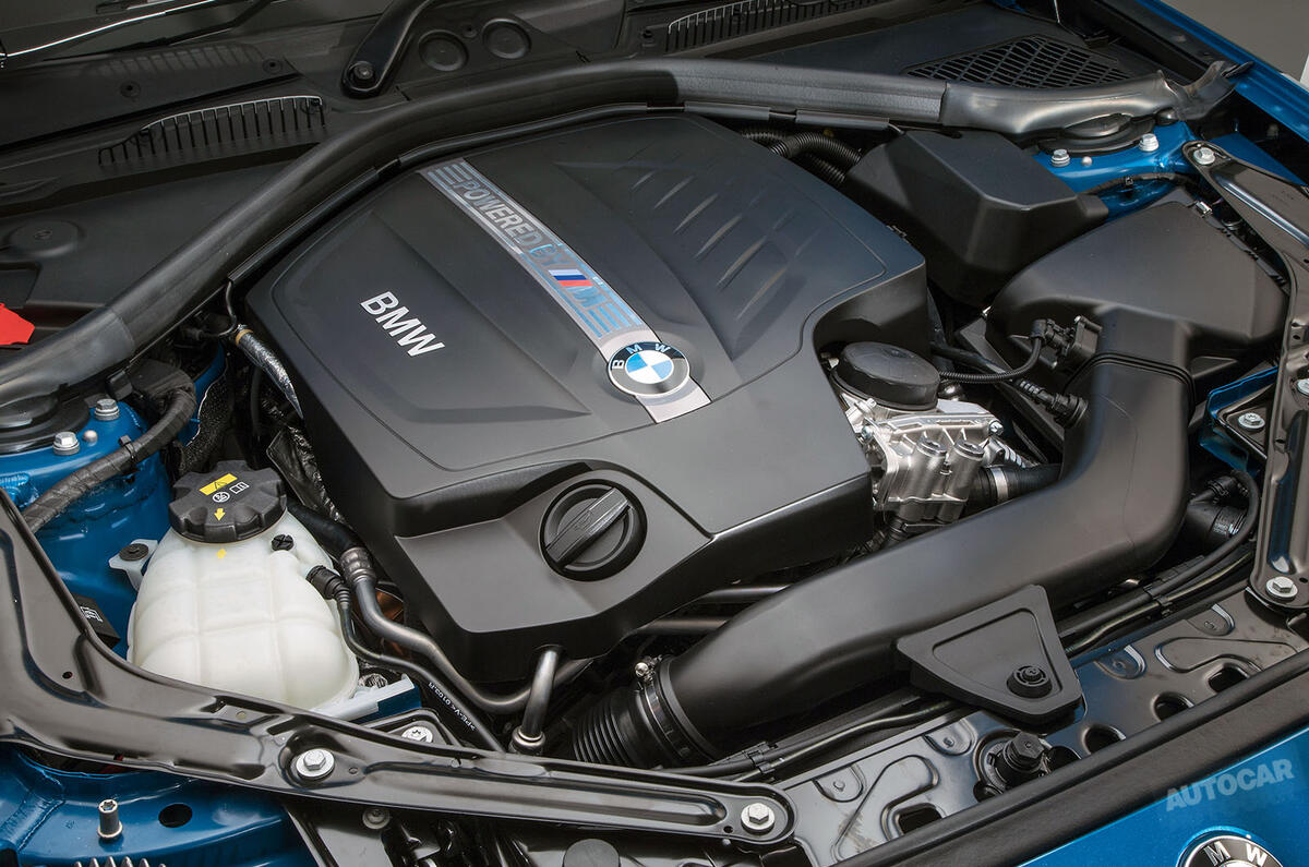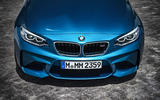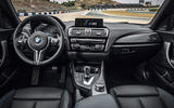 Power and torque are up from its 1 Series M Coupé predecessor, to 370bhp and 343lb ft, with an 'overboost' function providing a further 26lb ft. These equate to a 4.5sec 0-62 time on the manual car, with BMW's DCT dual-clutch automatic transmission shaving a further 0.3sec off. Top speed is limited to 155mph. Upon launch, there will be no option to remove the limiter in the UK - which would raise the top speed to 168mph - although such a pack is under consideration by BMW following requests from prospective UK M2 buyers.