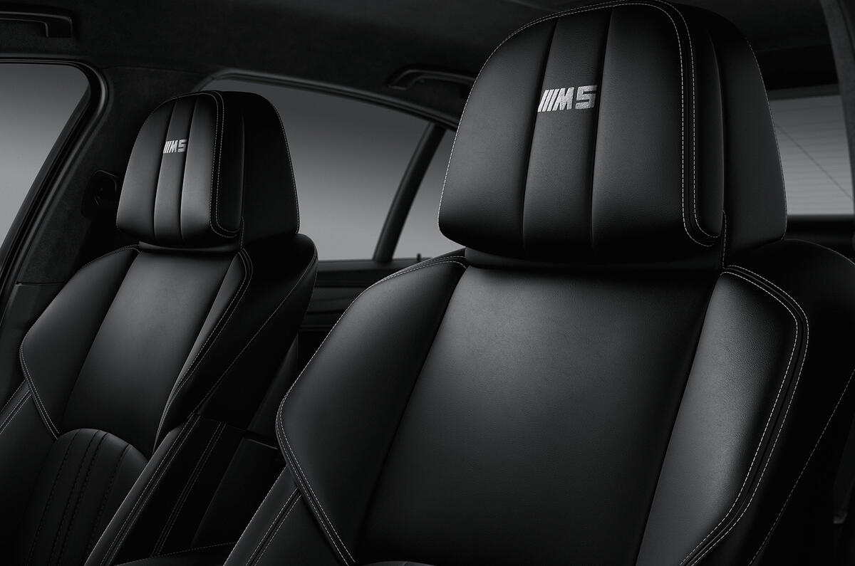 The M Competition Package provides stiffer spring and damper response than the standard M5, and thicker anti-roll bars, as well as tweaks to the electronically controlled limited slip diff for a sportier response. The six-piston brakes are finished in glossy Jet Black paint.