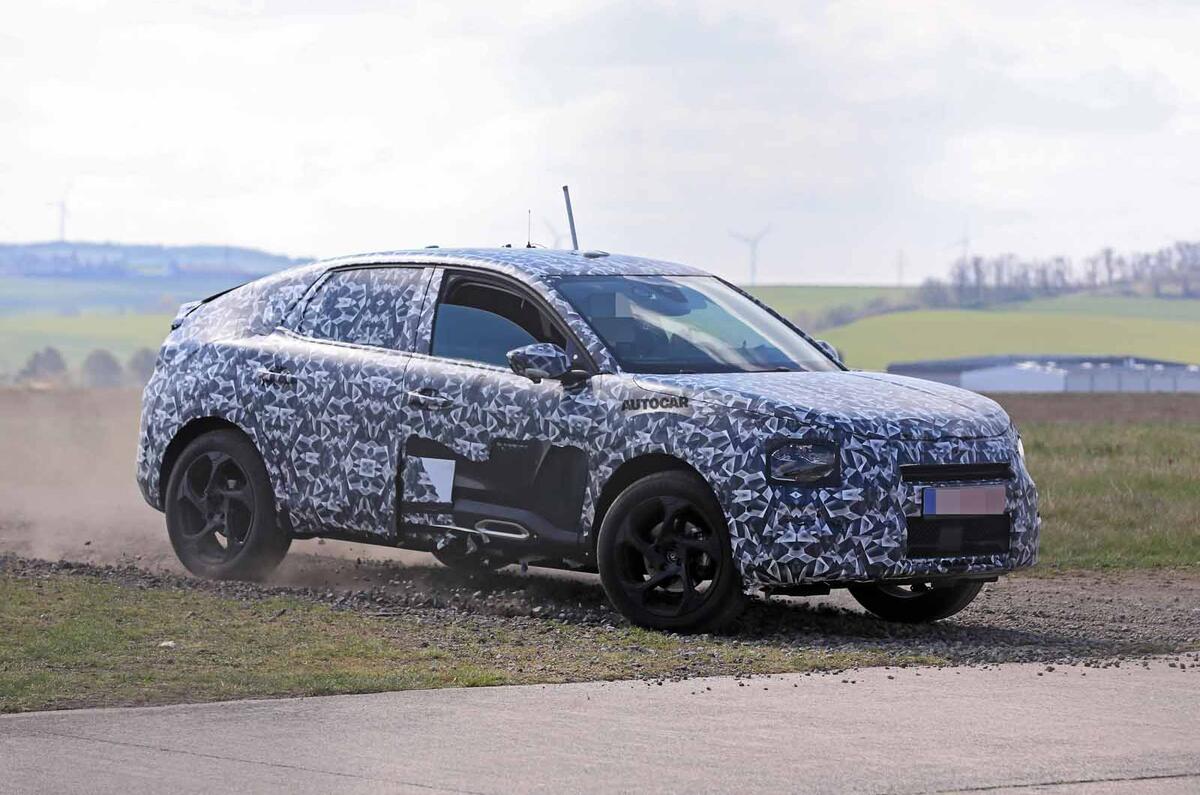The images offer a detailed look at the new car in disguise, which moves towards the now-fashionable coupé-SUV bodystyle by way of a distinctly sloping roofline and a raised tailgate. However, clear Citroën design cues remain in the front end, particularly the low-mounted headlights, and a clamshell bonnet features.