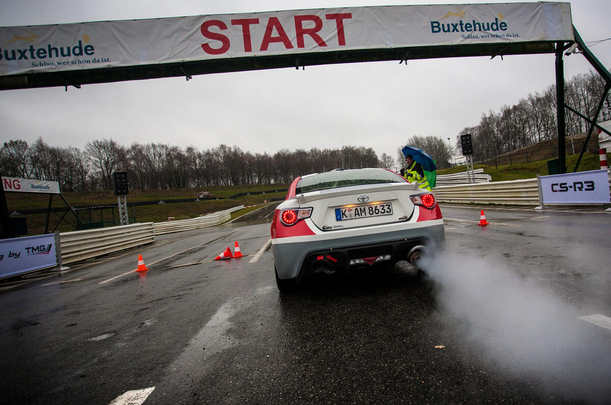 Like most things in motorsport, turning a road-going GT86 into a competition car does not come cheap. It’s ¤84,000 plus local taxes, in fact. But for that you get your GT86 complete with an engine that has been tweaked up to about 250bhp, with race exhaust, lightened flywheel, greater cooling ability and the like, plus the rest of the fripperies.