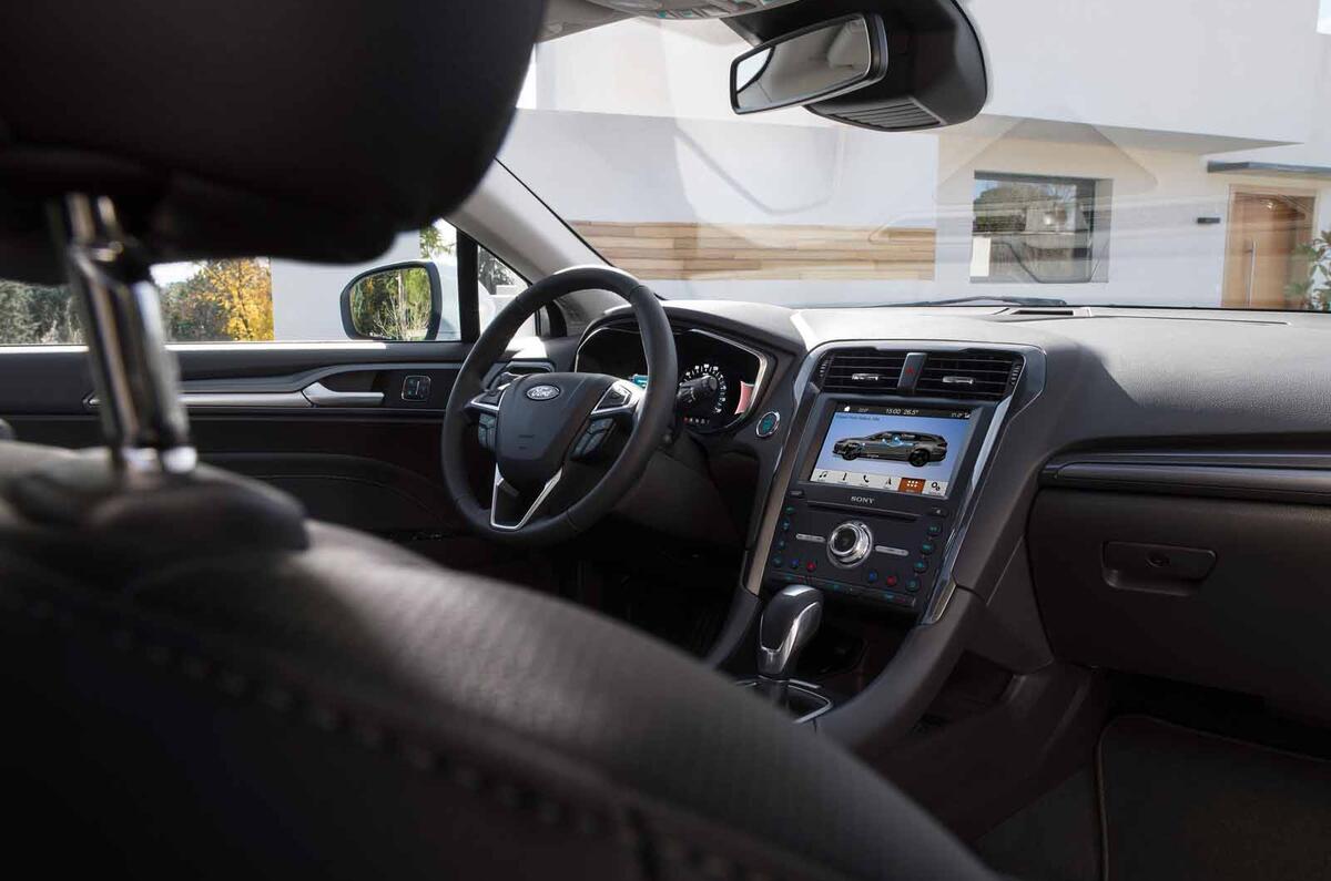 As confirmed last year, the Mondeo estate will also new be available with a hybrid version for the first time. Expected to account for 50% of sales, the petrol-electric model uses the same 184bhp 2.0-litre Atkinson cycle petrol engine mated to an electric motor, generator, 1.4kWh lithium-ion battery and CVT-mimicking automatic gearbox. The estate is expected to emit 103g/km of CO2 once homologated. Boot space for the hybrid estate is reduced from 525 to 403 litres with the rear seats in place.
