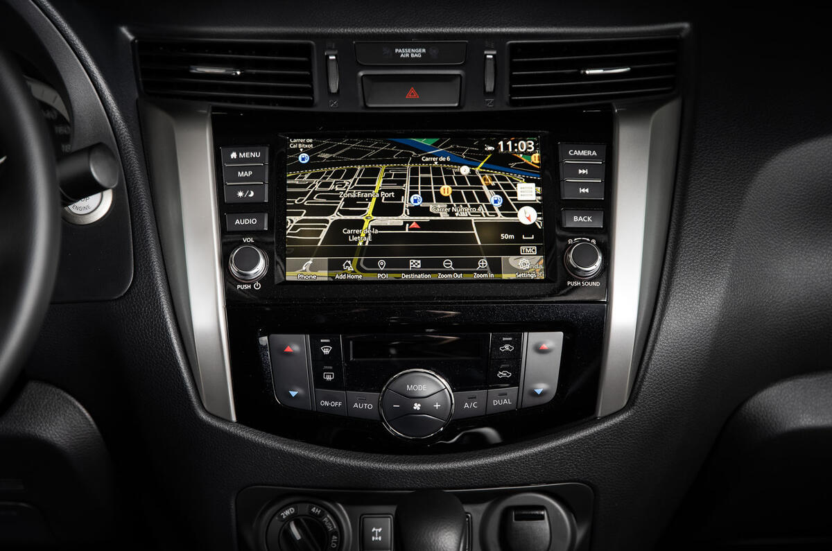 Changes inside are subtle, but fitted as standard from mid-range N-Connecta trim upwards is Nissan’s latest connectivity system, an 8in touchscreen, Apple CarPlay, and the ability to lock/unlock the Navara, configure the sat-nav and check fluid levels via an associated smartphone app.