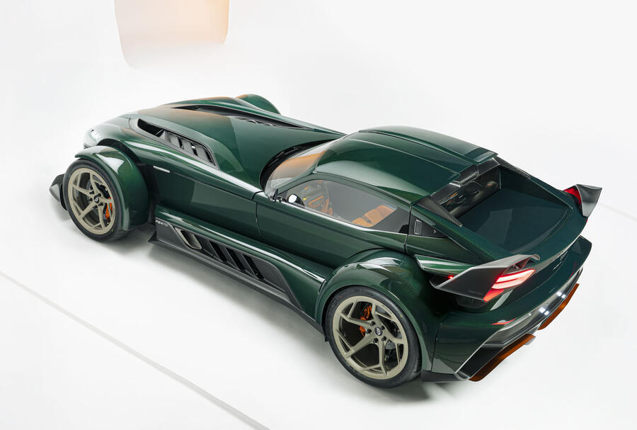 In this installation, the base V6 unit is unchanged but it gets new Donkervoort-made additions, such as turbos, a different intercooler, new software and 3D-printed exhaust extractors. In total the engine weighs less than 170kg, a key reason for the car’s sub-tonne kerb weight.