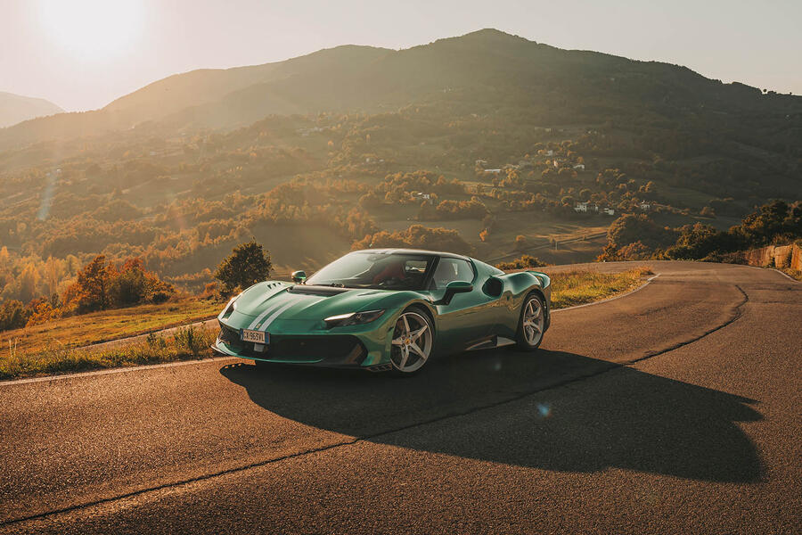 Ferrari swapped us into a different car for on-road driving. Rather than fixed-rate Multimatic dampers with titanium springs and £21k carbonfibre wheels, this had the standard Magneride dampers. Crucially, this set-up retains the ‘Bumpy Road’ mode for which modern Ferraris are well known.