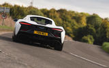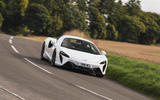 The Spider also enjoys similar great all-quarter visibility as the coupe. The view forwards and to the sides is excellent. To the rear, the car adopts the glazed flying buttresses also seen on the 720S Spider, which fulfill their aerodynamic purpose without obstructing your over-shoulder rearwards view any more than is necessary.
