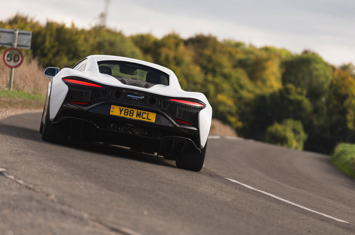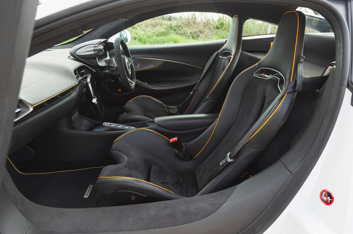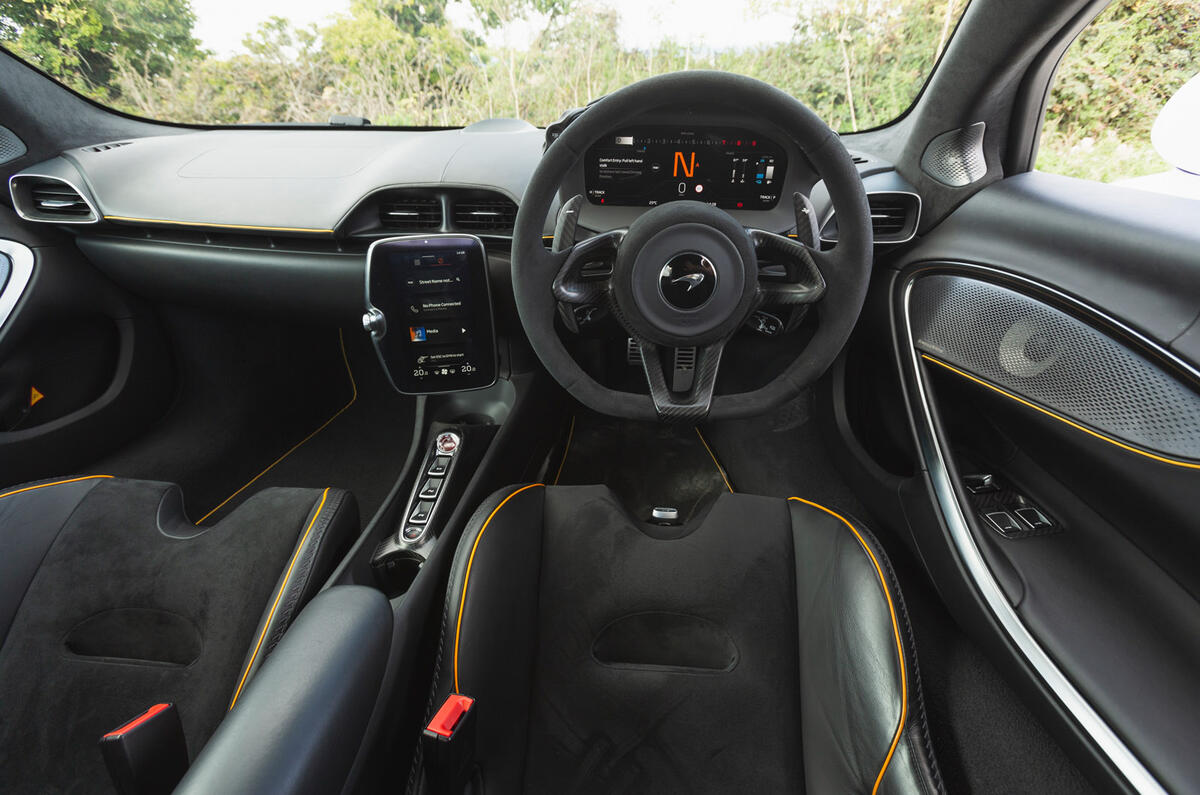 McLaren’s clever one-piece gearshift paddle survives. Above it, new toggle controls for its adaptive powertrain and chassis modes sit on the upper edge of the instrument binnacle. These are easy to spot without taking your eyes far from the road and prod with a finger outstretched from the steering rim.
