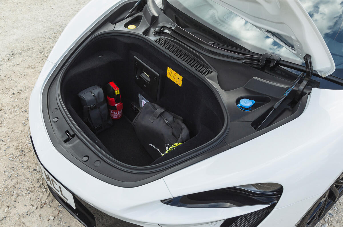 Once comfortable, you will notice how thoughtfully McLaren has refined and enhanced its philosophy on cabin layout, and how cleverly it has created useful storage space. There’s no glovebox, but there are large door pockets at the front of the door consoles, which are designed to retain their contents as the doors themselves pivot and swing away upwards – and they do so very effectively.