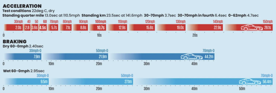 Our economy tests suggest it’s capable of motorway touring at close to 37mpg, but that’s only about 10% better than a Corvette C8; the 3.0-litre 911 Carrera T tested in 2023 actually returned better.