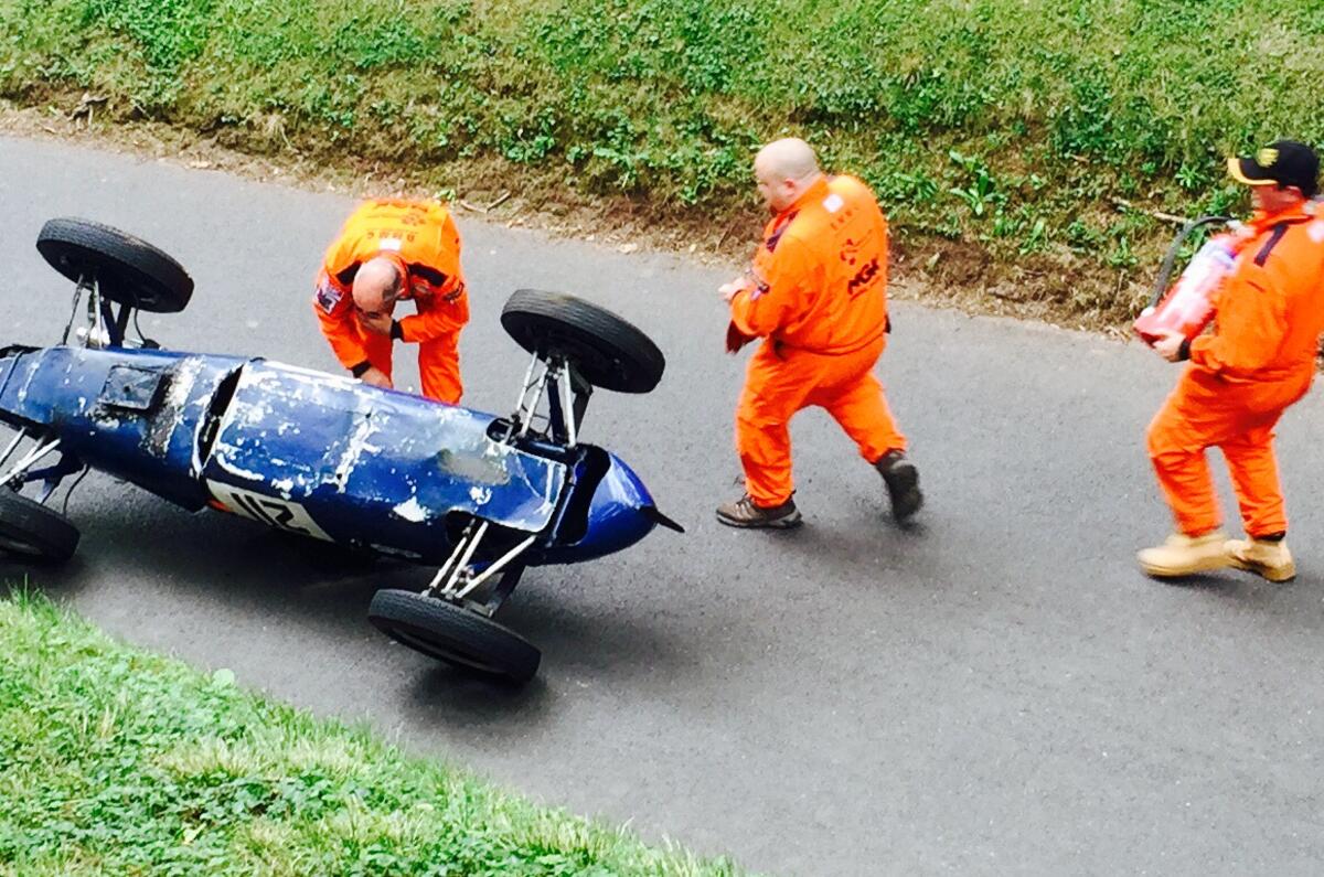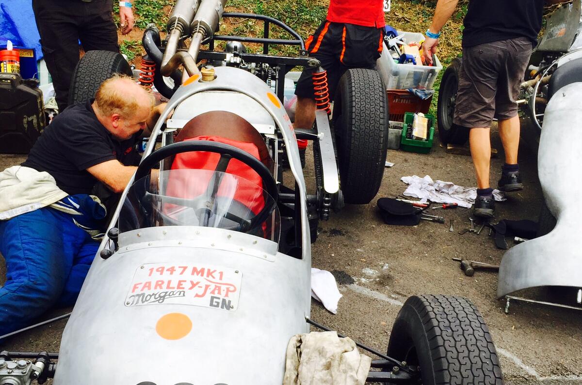 To give you an idea, ahead of me sat a row of 600bhp+ formula cars, to the left a collection of cigar racers - featuring a snake-hipped gent with a superb 'tache wriggling into a Cooper with a Chevy V8 as his headrest - and to the right an Audi Quattro S1, Porsche 911 GT3 Cup and various race-prepared Elans.